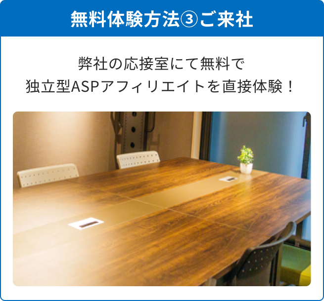 無料の資料ご請求後に、お客様のご希望に応じて、独立型ASPアフィリエイトの無料体験をすることができます。