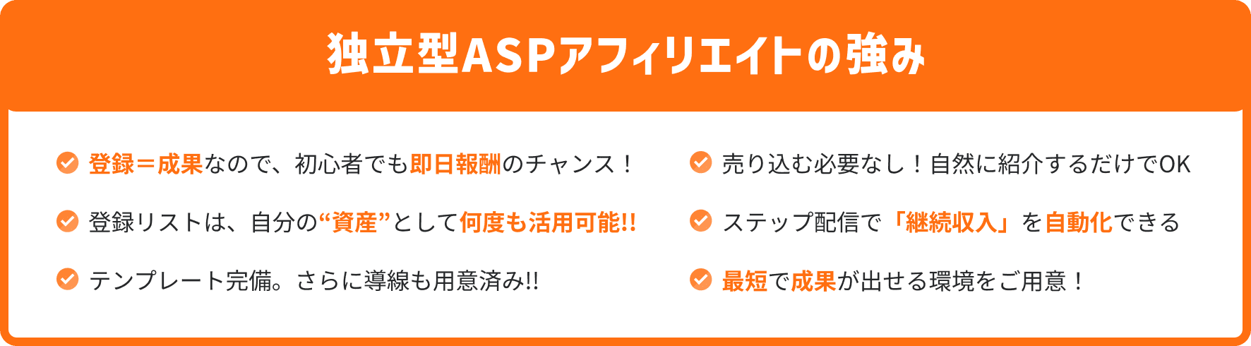 • 中でも、弊社独自の独立型ASPアフィリエイトは、初心者でも再現性が高く、継続的に収益を得られる設計になっています。